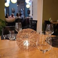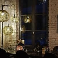 Des suspensions lumineuses qui évoquent l'effervescence du Champagne.