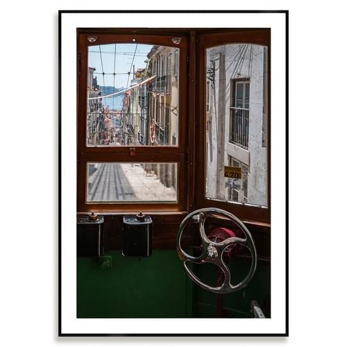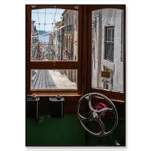 Avec Fenêtre sur Lisbonne, Bruno Aressi propose une vision intérieure de la ville, saisie depuis un tramway en mouvement.