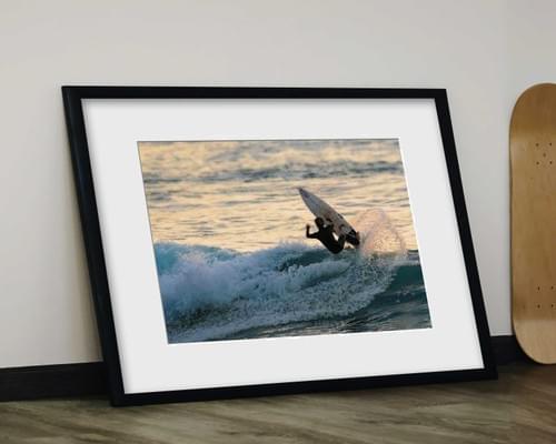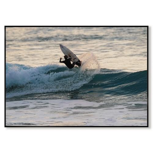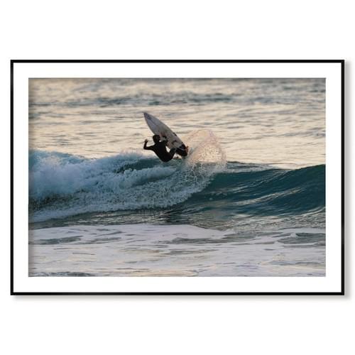 Cette photographie contemporaine offre une vision dynamique et élégante du surf, entre mouvement pur et esthétique minimaliste.